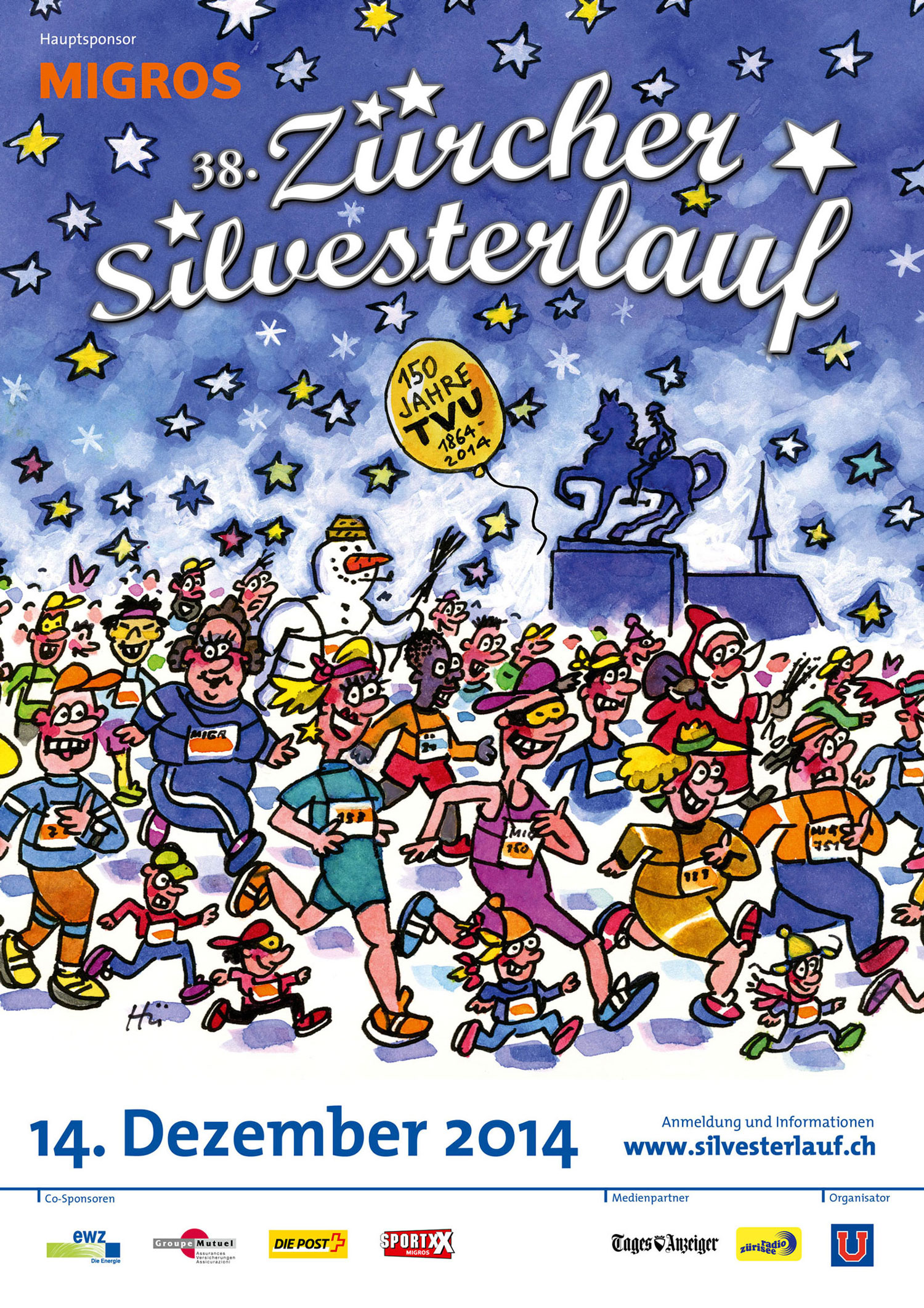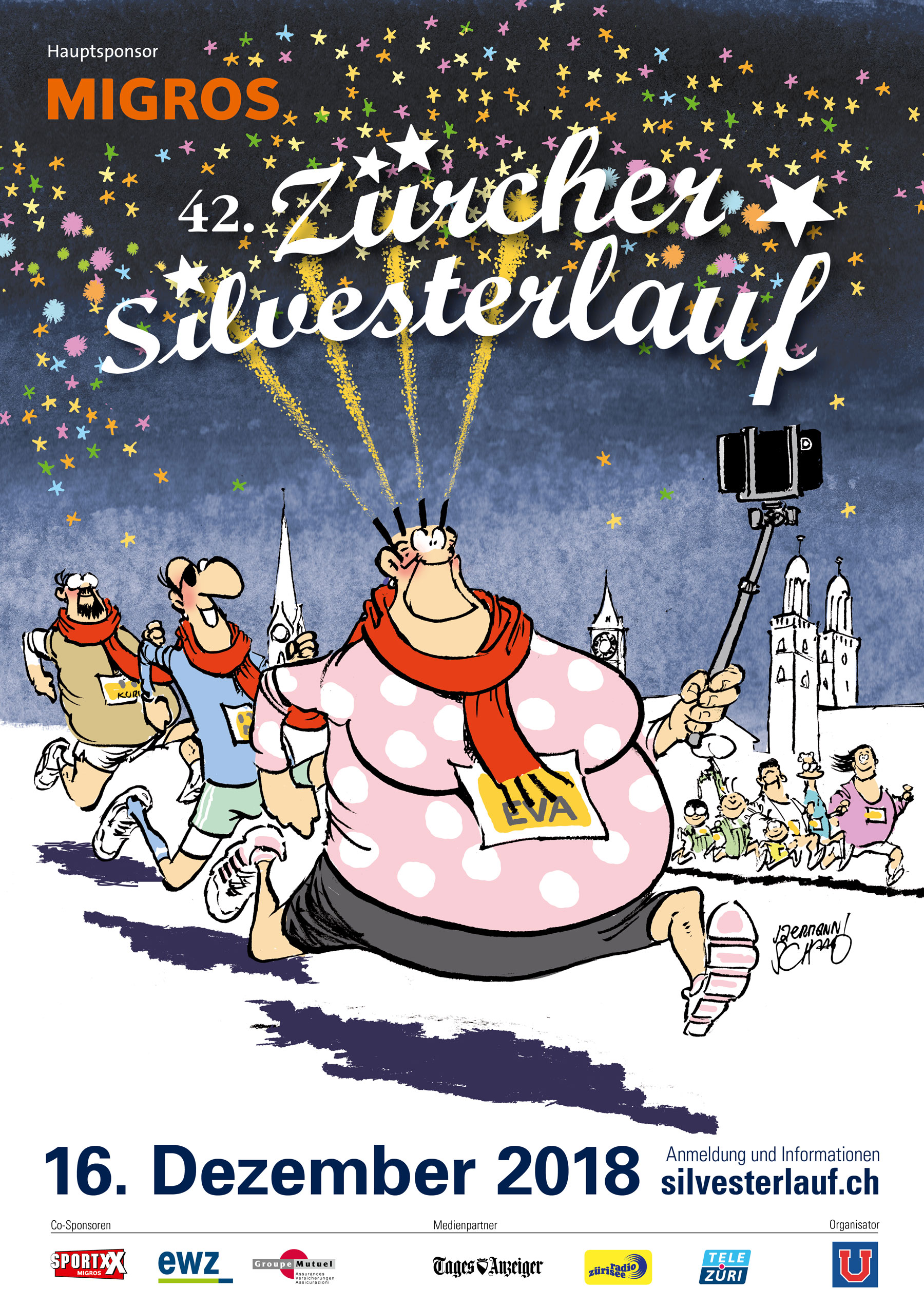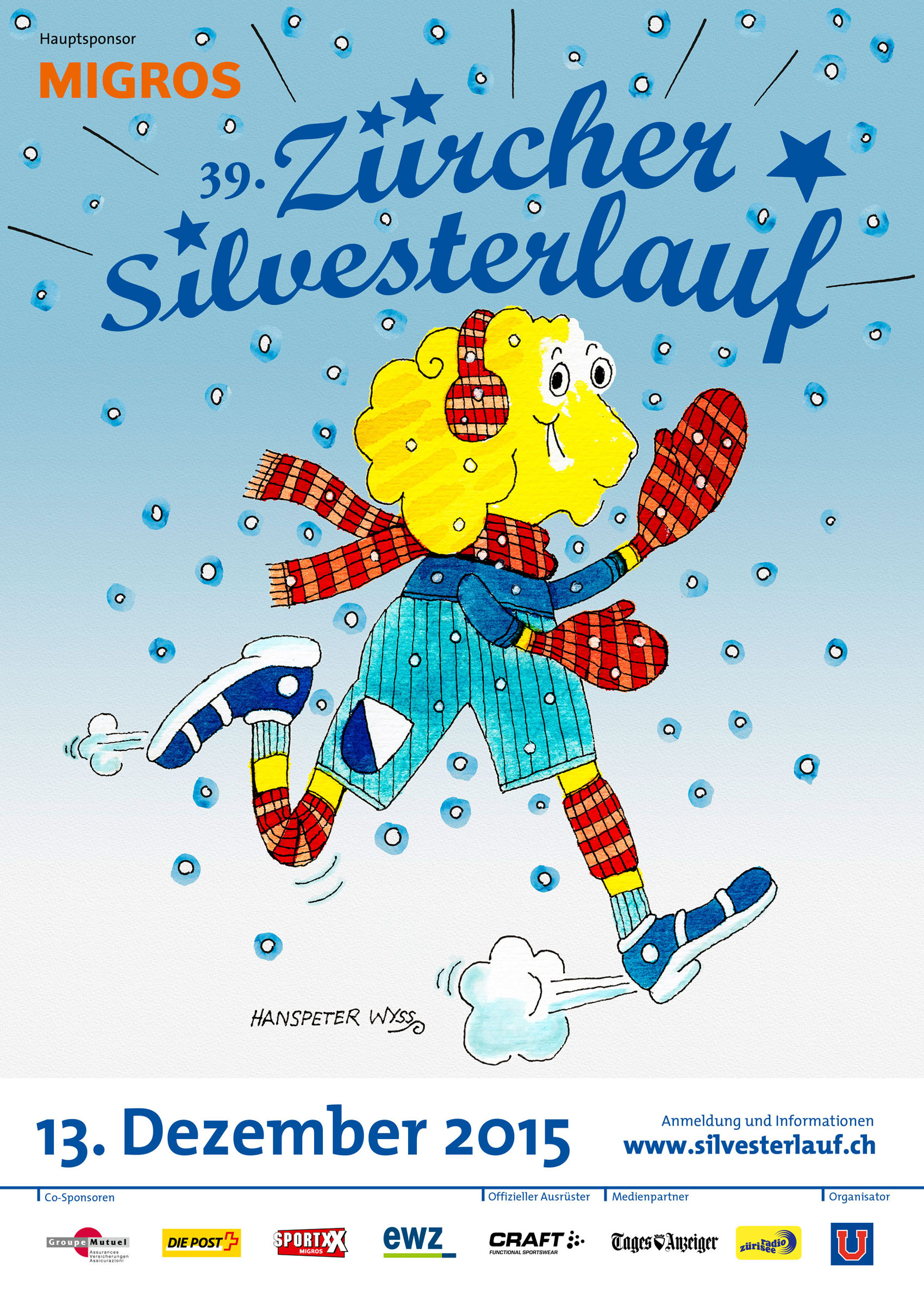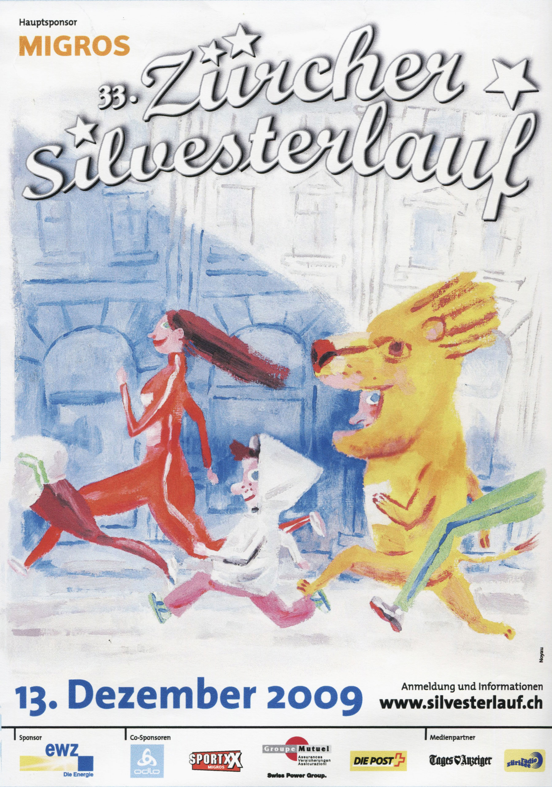 Erstmals prägt die Illustration eines Schweizer Künstlers das Erscheinungsbild des Zürcher Silvesterlaufs. Auf den bekannten Zürcher Comiczeichner Mike Van Audenhoven († 2009) folgen bis 2019 viele weitere namhafte Künstler:innen und widerspiegeln mit ihren Werken die facettenreiche und farbenfrohe Laufveranstaltung.
